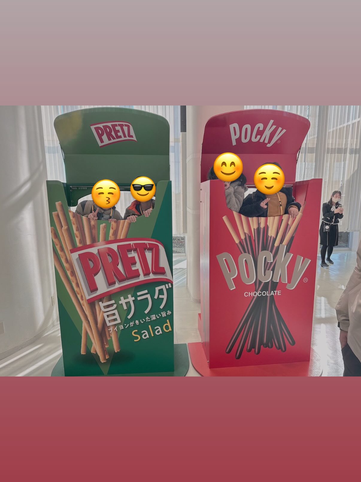 巨大なゴールインマークや、ポッキーの製造ラインにみんな興味津々!