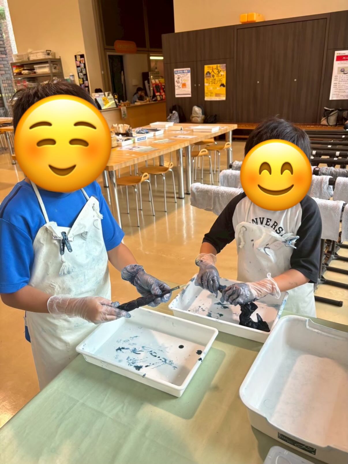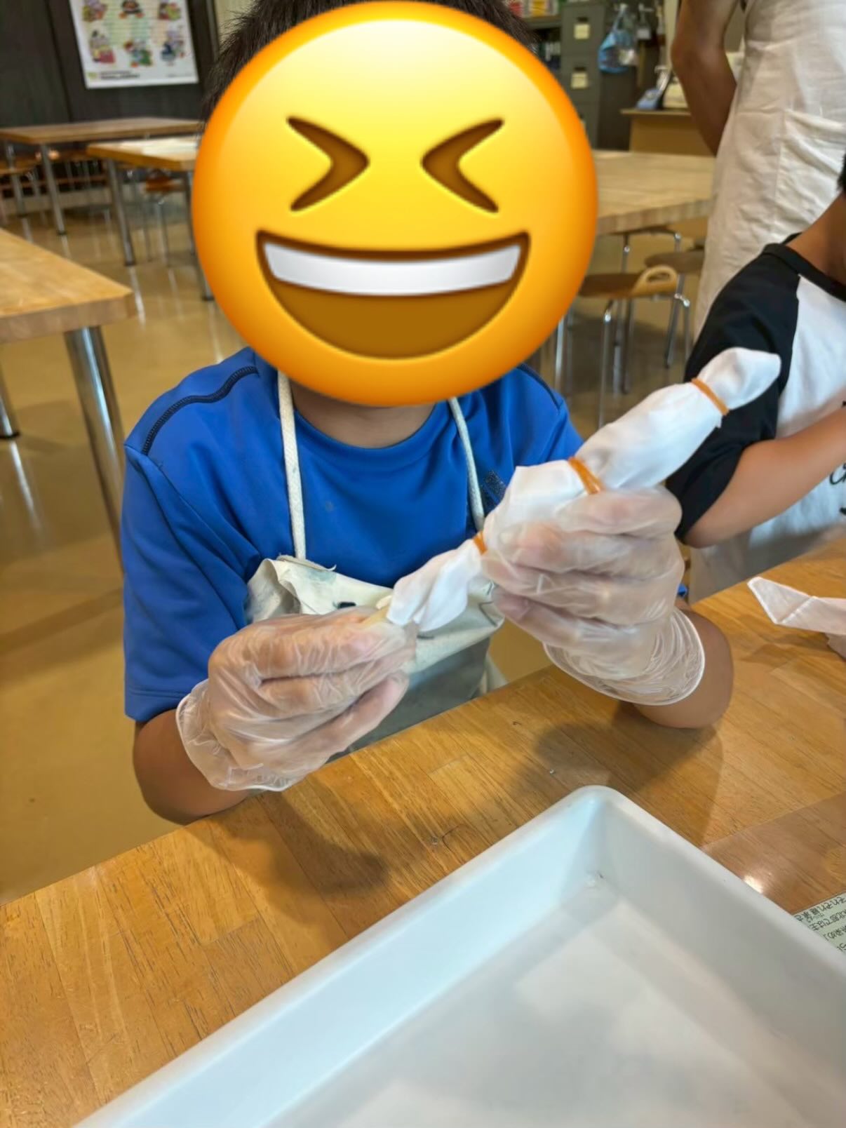 柄が崩れないようにゴム手袋で生地を絞る作業は、ADHDや多動傾向のあるお子さまにとって、手先の集中力と段取りを考える力を養う絶好の機会です。完成した美しい作品を見て、達成感あふれる笑顔を見せてくれました😊